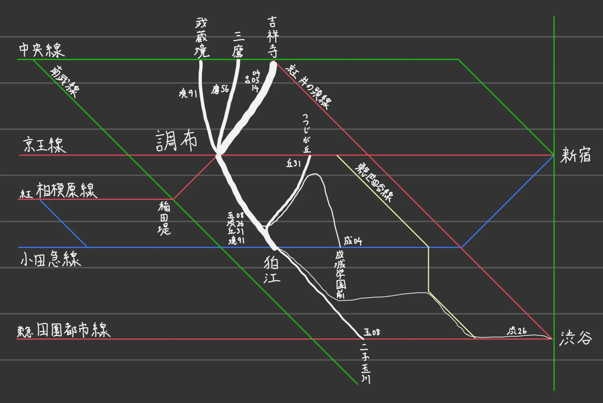 一日2本だけ、渋26 渋谷駅⇄調布駅南口なるバスが存在する。もしかしたら時間が合うかもしれない。暇でしかたないときは乗ってみよう。