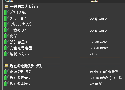 ただ、電源に刺しっぱなしにしてもよいと思うと気分的には楽になり、いざ持ち出すときに電池がないという惨状を回避することができる。また、VJS142よりさらに古いVAIOも持っているが、こちらはいたわり充電のおかげか、発売から10年以上経った今でも98%の容量を維持している(と主張している)。