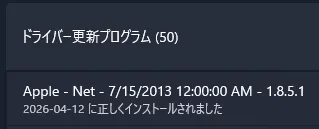 なお、このドライバはiTunesにも同梱されている様子はない。インストール中にどこかから拾ってくる可能性もあるが、検証のために触る気にもならないので謎のままにしておく。